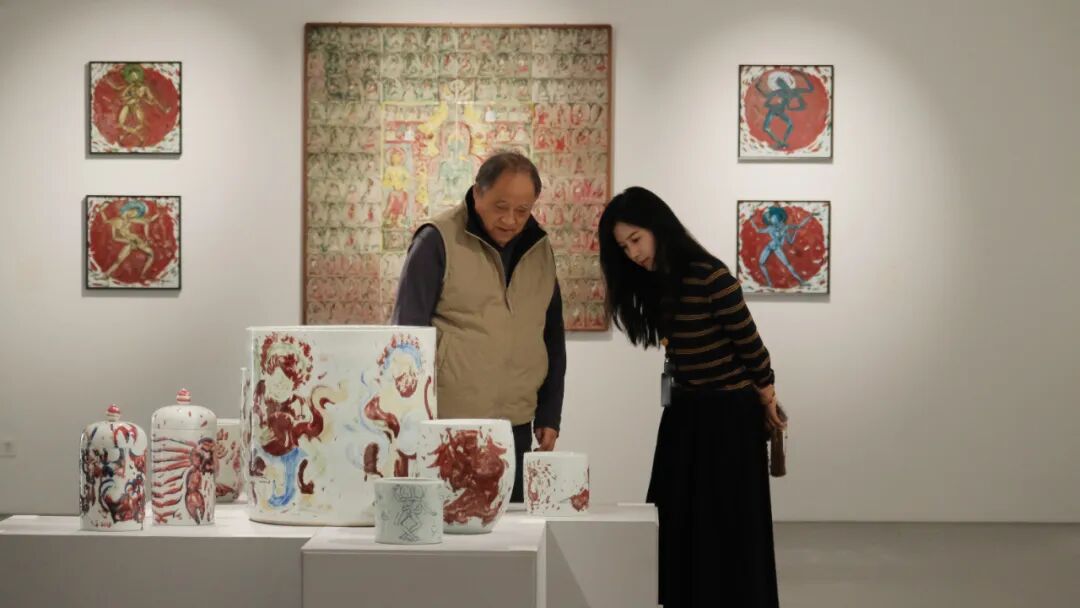 宋建明教授在致辞中说道:“每次与翟小实老师交流,都仿佛沉浸在他独特的艺术世界中。他在中国美术学院的氛围中,形成了自己的艺术范式,这种信手拈来的创作手感,展现了一种极高的艺术境界,令人深感钦佩。今天在现场欣赏他的釉里红作品,更能感受到其中那份随性与天成的美感,这种不刻意雕琢却浑然天成的艺术表达,实属难得。他的作品中蕴含着对敦煌艺术、古代雕塑图式的深入研究,同时又以大写意的方式,将这些传统元素转化为充满个人风格的艺术场景。这种既传承又创新的艺术实践,正是翟老师独特魅力的体现。”