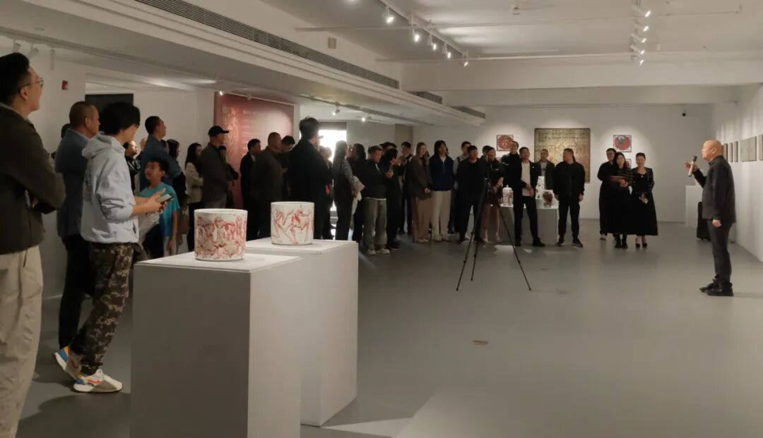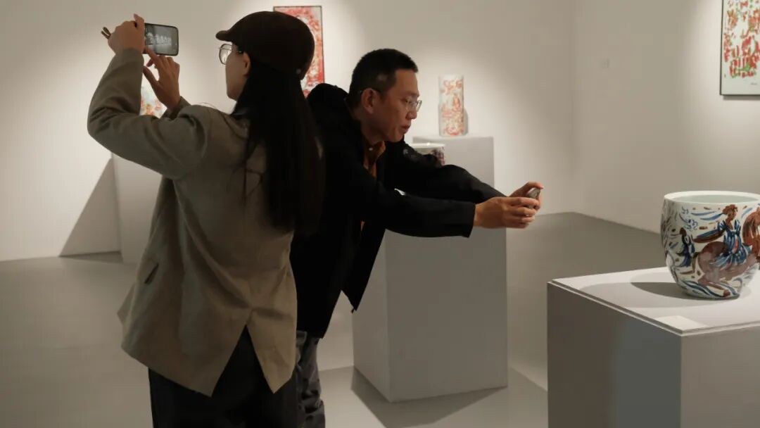开幕仪式上,刘正教授讲到:“这次展览非常精彩,让我不禁回忆起二十多年前与翟小实老师一同在景德镇创作釉里红的时光。他的作品始终保持着独特的艺术风格,将釉里红的传统工艺与个人化的表现力完美结合,呈现出浓郁的中国文化底蕴与艺术魅力。小实不仅为人谦和、性格鲜明,更在艺术创作中展现出非凡的专业自信与独特的人格魅力。他早年便以开阔的视野关注国际艺术动态,至今依然保持着敏锐的艺术直觉与创作智慧。此次‘釉见小实’展览,以釉里红这一极具中国特色的陶瓷语言为载体,既是他艺术成就的一次阶段性总结,更是他性格与魅力的鲜活展现。”