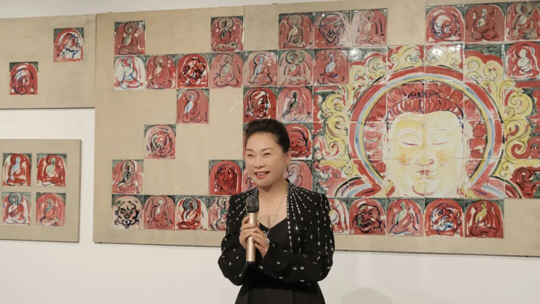 夏赛丽女士在致辞中分享道:“这是我第一次近距离欣赏翟小实老师的作品,内心深受震撼与感动。此次展出的作品以瓷板画为媒介,既展现了传统佛教题材的深邃意境,又赋予了其全新的艺术表达。正如禅宗所言,‘见佛是佛,见佛不是佛,见佛还是佛’,翟老师的作品让我深刻感受到艺术与哲思的交融。他以创新的形式将传统文化进行转化与升华,既保留了东方美学的精髓,又赋予其当代艺术的活力。世间万物皆在生生灭灭,唯有文化在传承中不断创新、在创新中永恒。翟老师的创作正是这种文化生命力的生动体现,令人钦佩不已。”