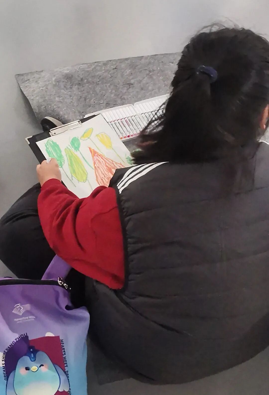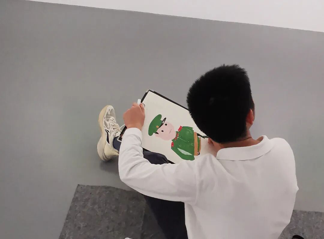 美术馆现场临摹,不仅是与艺术形式的单一对话,其中的艺术空间、作品、观者等“交际”关系,也是课程教学的一部分。我们都知道,孩子们在生活中最为缺乏的是对外秩序的认识,及待者的交流。在社会秩序中上述二者是构建有效生存的必要环节。以相对独立,又不乏生活有序性的美术馆,为生活实践的场地,培养学员们的生活能力,是最佳的选择之一。